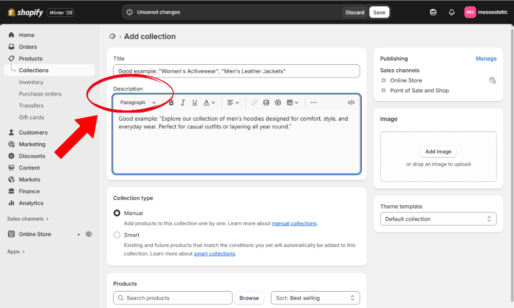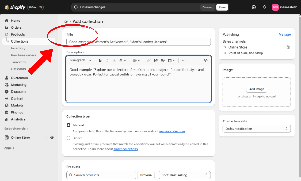 Your collection title matters for Google and your customers. Choose a name that's clear, descriptive, and includes relevant keywords.